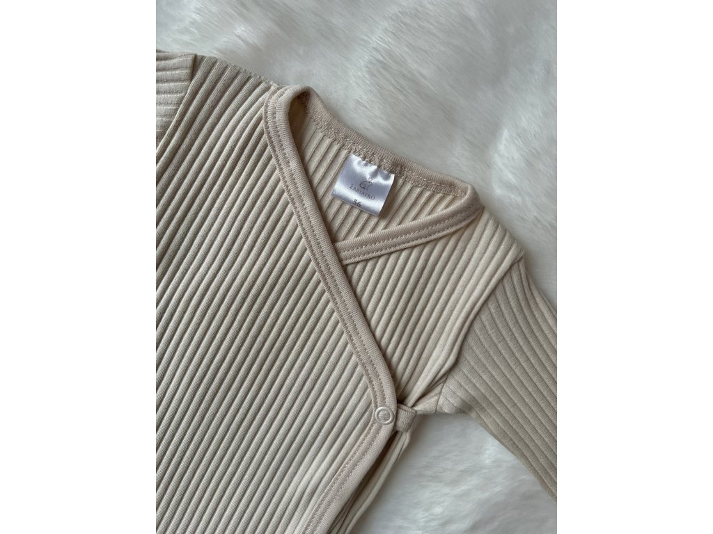 Zavinovacie body Pure Sand je vyrobené zo 100 % bavlny s jemnou rebrovanou štruktúrou, ktorá je šetrná k citlivej detskej pokožke. Praktické zapínanie umožňuje jednoduché obliekanie bez prevliekania cez hlavičku.