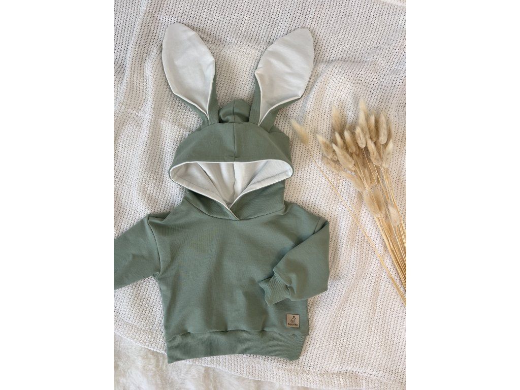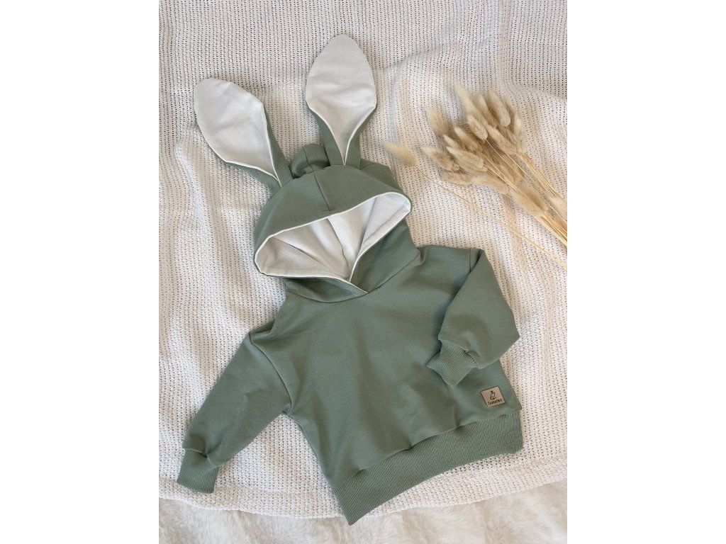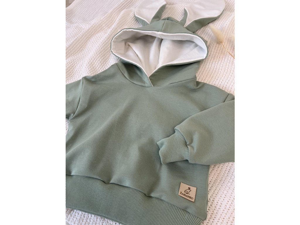Detská mikina Zajko uško – originálna handmade mikina so zajačími uškami od značky Žabiatko z kvalitnej bavlny s elastanom. Mäkká, pohodlná a ideálna na každodenné nosenie.