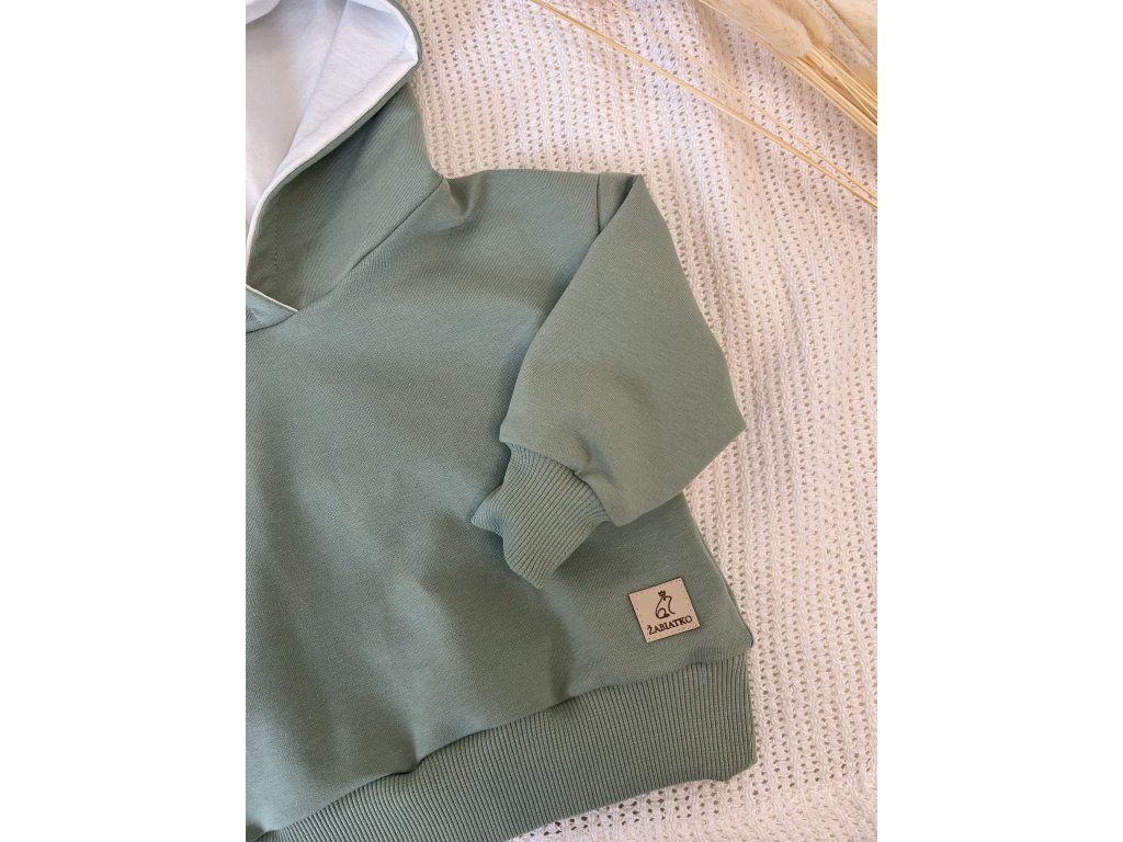 Mikina je ručne vyrábaná (HANDMADE) značkou Žabiatko s dôrazom na kvalitu a pohodlie. Materiál (95 % bavlna, 5 % elastan) je mäkký, priedušný a príjemný na dotyk, pričom zároveň poskytuje dostatočnú pružnosť pre voľný pohyb dieťaťa.