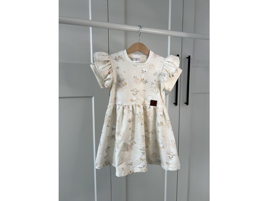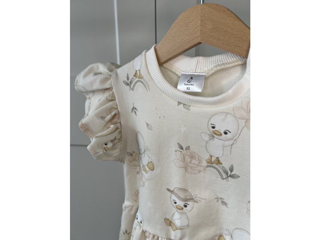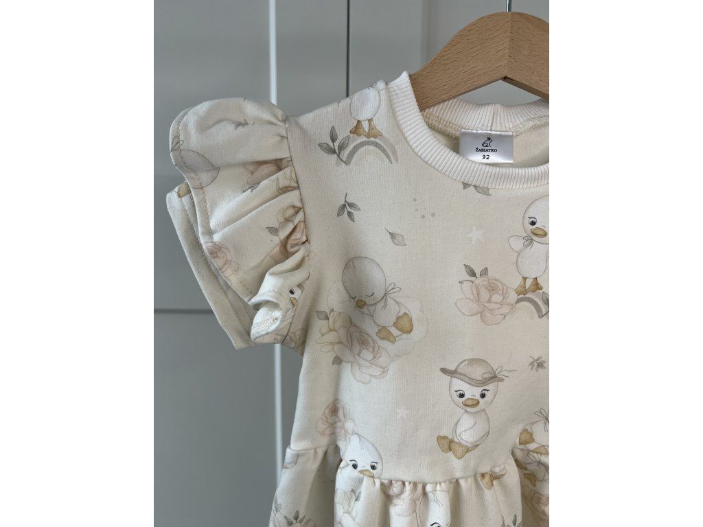 Detské šaty s motívom kačičiek – handmade šaty pre dievčatá od značky Žabiatko z kvalitnej bavlny s elastanom. Pohodlné, priedušné a ideálne na každodenné nosenie aj špeciálne príležitosti.