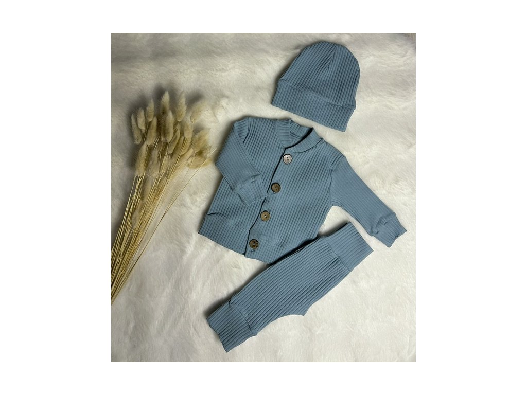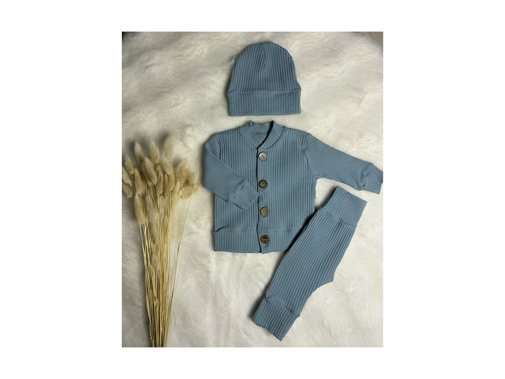 Set ELIO SOFT vo farbe Calm Sea je praktická a štýlová súprava oblečenia pre bábätká, ktorá poskytuje maximálne pohodlie počas celého dňa. Obsahuje pohodlné tepláky, mikinu a jemnú čiapku v jednotnom odtieni Calm Sea, ideálne na každodenné nosenie aj prechádzky.