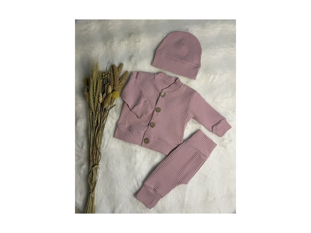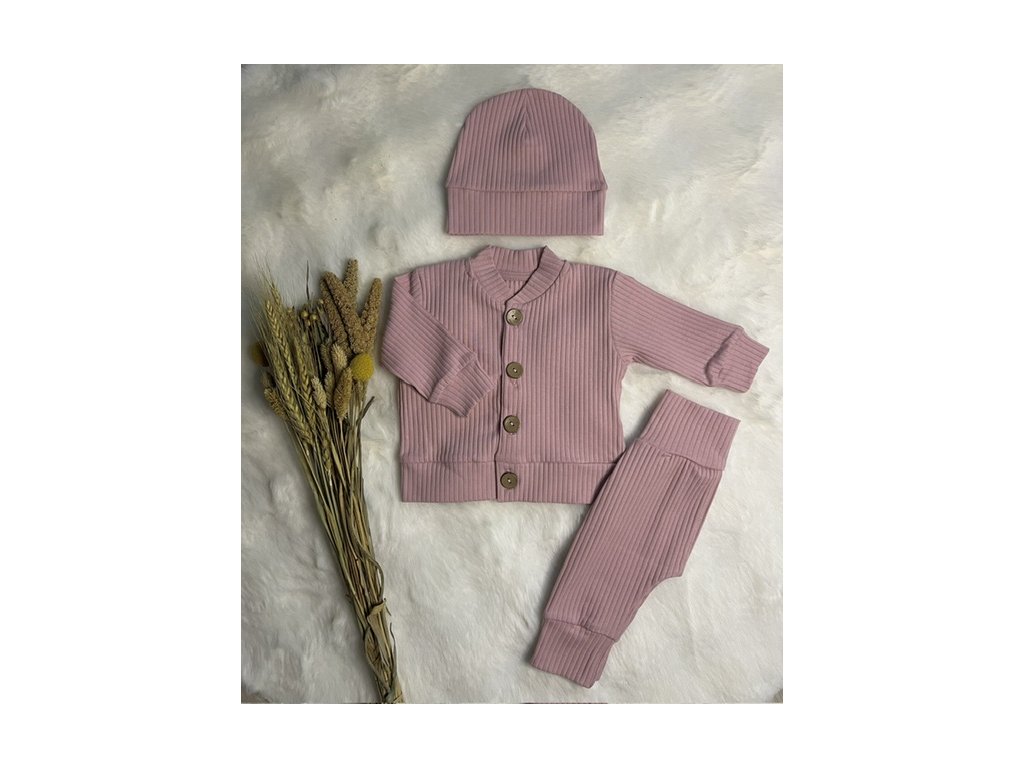 Set tepláky+mikina+čiapka Dusty Rose