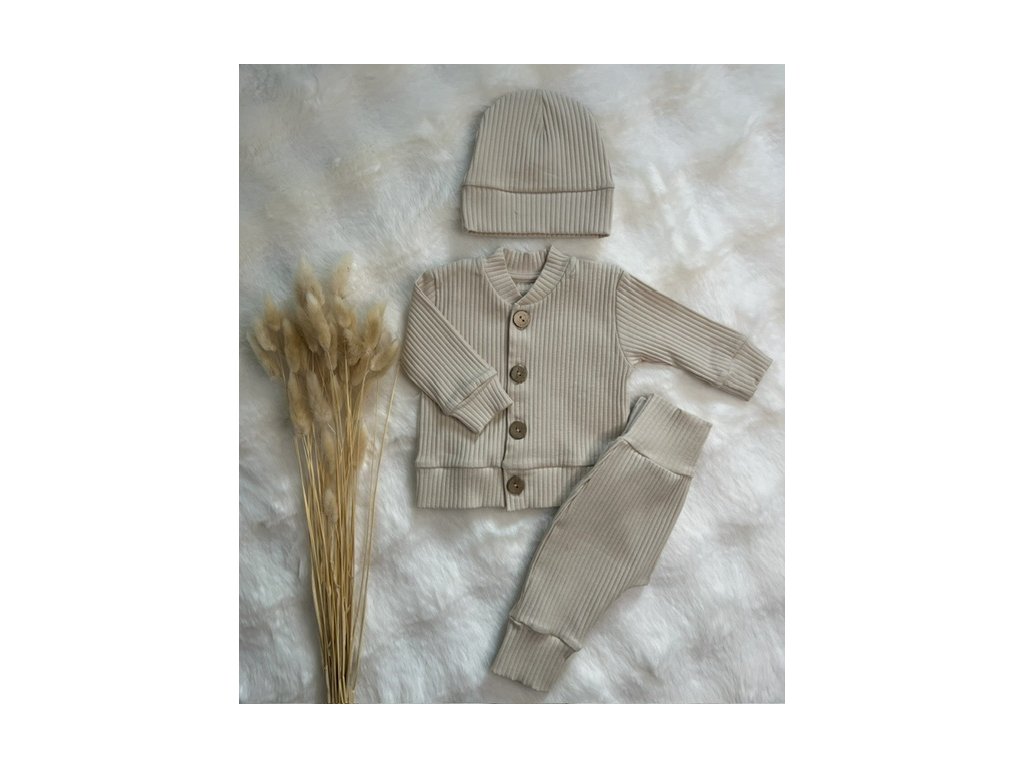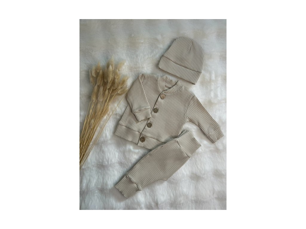 Set ELIO SOFT vo farbe Pure Sand je praktická a štýlová súprava oblečenia pre bábätká, ktorá poskytuje maximálne pohodlie počas celého dňa. Obsahuje pohodlné tepláky, mikinu a jemnú čiapku v jednotnom odtieni Pure Sand, ideálne na každodenné nosenie aj prechádzky.